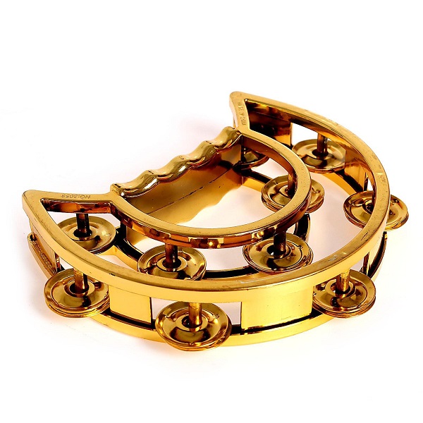 Изделие имеет 8 металлических тарелок. У бубна есть ручка, за которую малышу будет удобно держать игрушку.