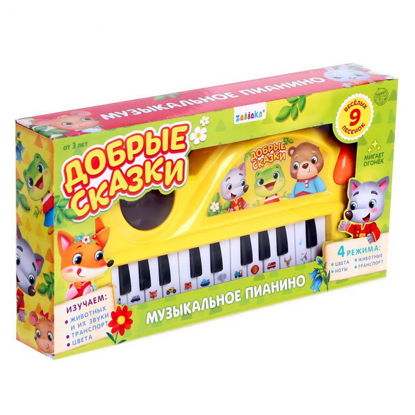 Музыкальное пианино "Добрые сказки" развивает слуховое восприятие, мелкую моторику рук, воображение, память. Игрушка воспроизводит 9 весёлых песенок.