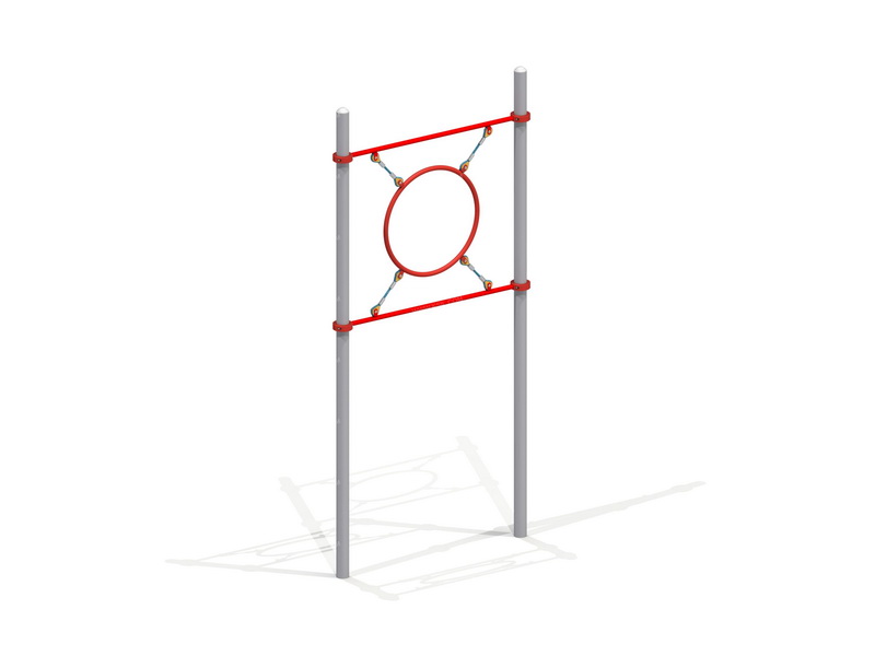 Оборудование состоит из 2-х несущих стоек, выполненных из металлической трубы диаметром 88 мм и 2-х металлических перекладин диаметром 33 мм, крепящиеся к стойкам при помощи хомутов. Между перекладинами установлено металлическое кольцо для метания, закрепленное на полиамидных или полипропиленовых канатах.