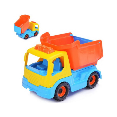 Игрушка Автомобиль-самосвал "Батыр" – пластмассовая игрушка, которую можно использовать как на улице, так и в доме. Машинка с кузовом, в котором можно перевозить различные игрушки, песок. Кузов машины откидывается, как у настоящего самосвала. Машина оснащена двумя парами колёс на двух металлических осях.