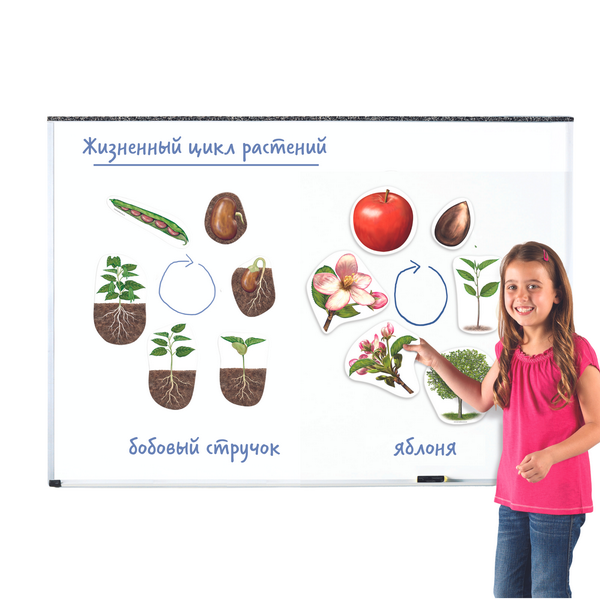 - 12 магнитных элементов (жизненный цикл фасоли и яблони).