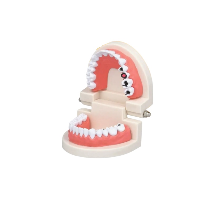 Перед вами - анатомическая модель челюсти и зубов с кариесом для игры и обучения. Анатомическая модель челюсти с зубами и кариесом — отличный инструмент для обучения и игры, который идеально подходит для детей, студентов медицинских учреждений, стоматологов и воспитателей. Эта игровая обучающая игрушка помогает наглядно изучить строение зубного ряда, показать влияние плохой гигиены полости рта и научить правильной чистке зубов. Модель выполнена из прочного пластика, ее можно полностью раскрывать, что делает процесс обучения увлекательным и удобным. Для детей это возможность в игровой форме примерить на себя роль стоматолога: ребенок может использовать пластилин (в комплект не входит), чтобы залечивать «дырки» в зубах, ставить пломбы или изучать расположение коренных зубов. Такая анатомическая игрушка станет прекрасным дополнением домашних игр или занятий в образовательных учреждениях.