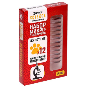 Набор микропрепаратов — это 12 слайдов с готовыми образцами для исследования под микроскопом.