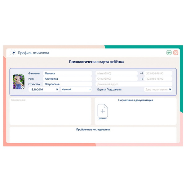 «Профиль психолога АЛМА» позволяет заводить карточку ребёнка, отслеживать историю работы с ним, фиксирует результаты исследований, формирует готовые отчеты специалисту. При проведении индивидуальной психодиагностики специалист сможет заносить данные ребенка, результаты исследований, а также помещать проективные рисунки детей в профиль ребенка.