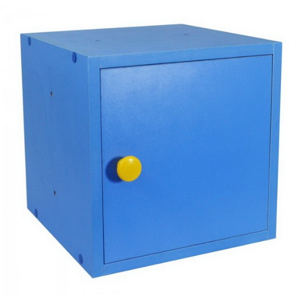Стеллаж изготавливается из ЛДСП и состоит из кубов-модулей. Модули имеют отверстия на боковых сторонах для крепления между собой. Благодаря такой конструкции можно использовать различное количество элементов и располагать их в любом порядке. Стеллаж можно установить на пластиковые колеса для удобного перемещения предмета мебели.
