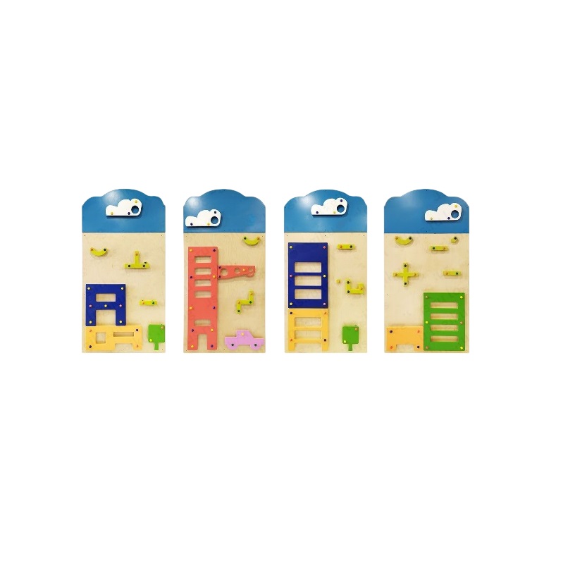 Панели для скалолазания «Город». Здесь есть все, чтобы дети почувствовали себя супергероями, покоряя многоэтажные дома или строительный кран и добираясь до самых облаков!
