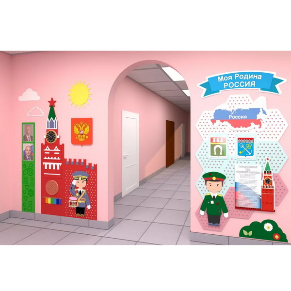 - Герб и карта России в цветах триколора. Расскажите об официальных символах нашего государства, истории их происхождения, а после покажите их на стенде. Каждый день дети будут видеть отличительные символы нашего государства и научатся распознавать их в обычной жизни на фоне символов других стран.
