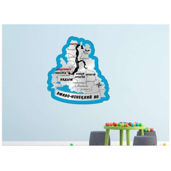 Настенное панно "Карта ЯНАО" выполнена из ПВХ с нанесением полноцветного рисунка. Для долговечности использования изображение покрыто защитной ламинацией.