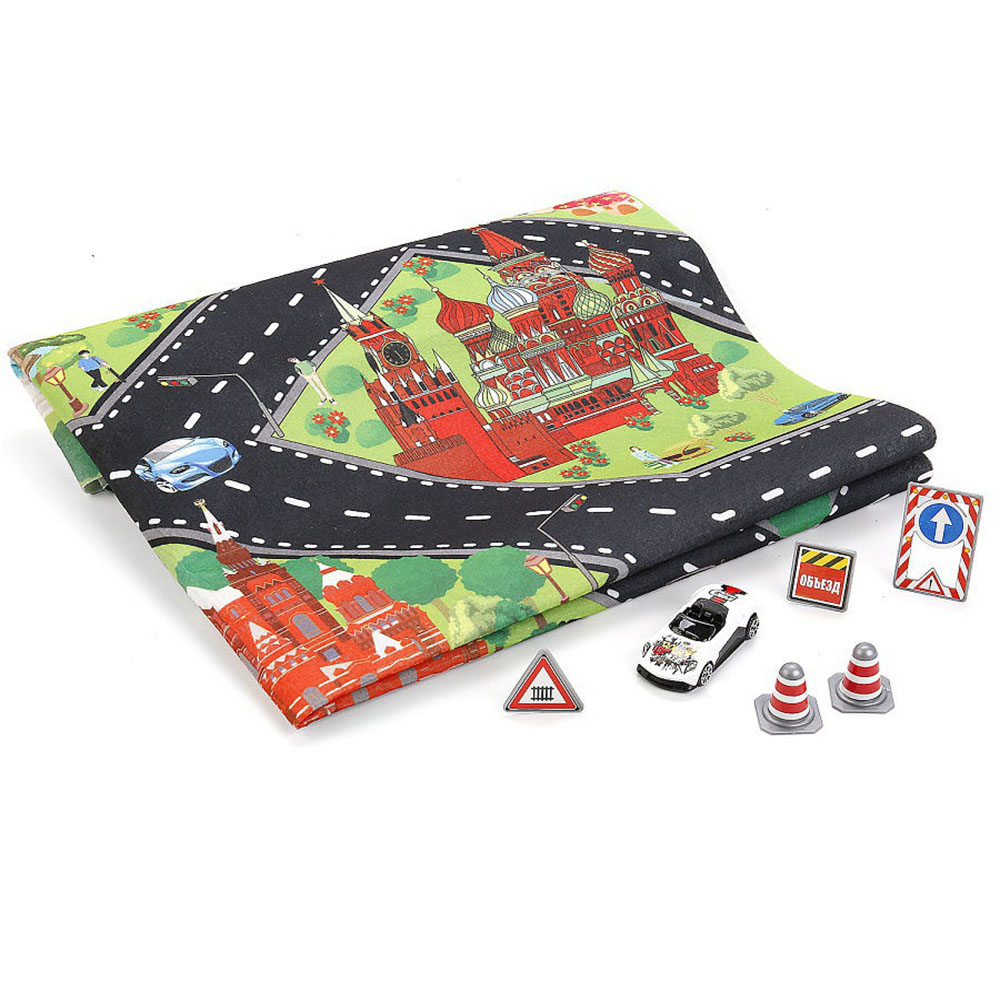 Этот яркий развивающий коврик предназначен для игр малышей. Его поверхность представляет собой изображение города. Также коврик можно использовать при обучении ребенка правилам дорожного движения