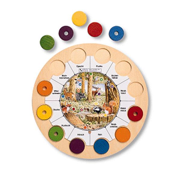 Игровое пособие в виде палитры круглой формы с набором цветных фишек предназначено для коллективной работы с последующей самопроверкой. Карточка с заданием накладывается на деревянную основу.