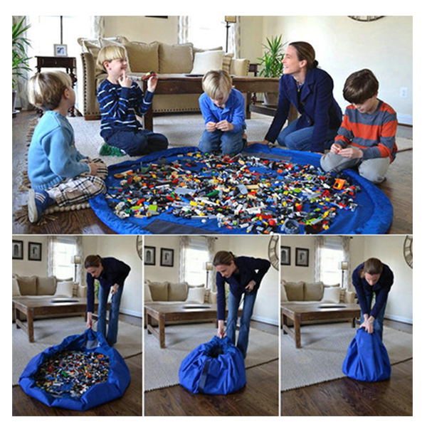 Легкая сумка из текстиля, благодаря своей необычной конструкции с кулиской, многофункциональна и проста в использовании. В разобранном виде она представляет собой круглое игровое поле диаметром 150 см с высоким бортиком. Во время игр на нем дети будут надежно защищены от сквозняка на полу, а детали – от потери. В собранном виде это сумка-мешок, в которой можно хранить детали конструкторов. Чтобы собрать сумку после игр, достаточно потянуть за кулиску, вы можете делать это сами или приучить к этому детей.