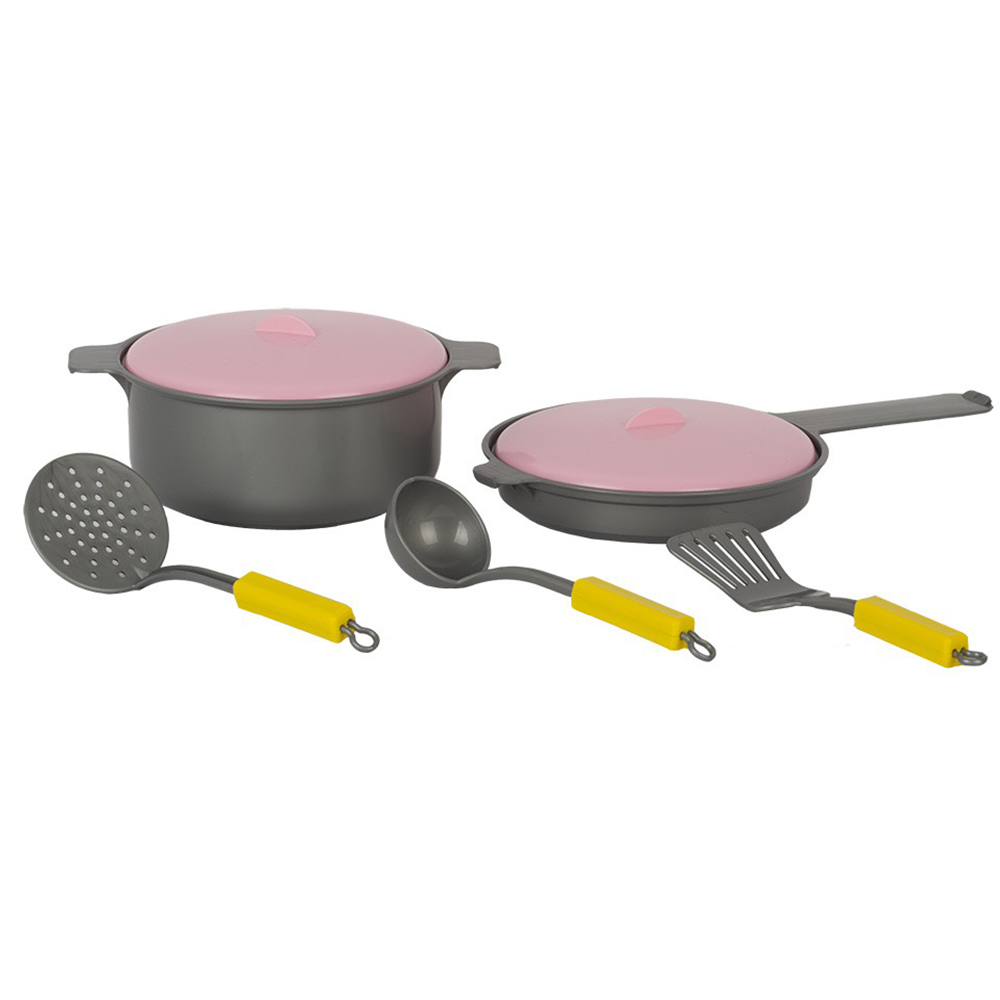 Комплектация: кастрюля с крышкой 1 шт., сковорода с крышкой 1 шт., лопатка 1 шт., шумовка 1 шт., половник 1 шт.