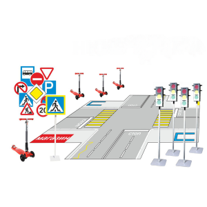 С помощью данного мобильного городка можно изучить все основные темы, такие как переход проезжей части по регулируемому пешеходному переходу, переход проезжей части по нерегу-лируемому пешеходному переходу, поведение на остановке общественного транспорта, виды дорожной разметки, знакомство с дорожными знаками и т.д.