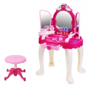 Игровой набор "Столик волшебницы" - это мини салон красоты. Играя, маленькая волшебница развивает творческие способности, навыки стилиста. В набор входят дополнительные аксессуары которые придадут игре больше реалистичности, благодаря легкости сборки, надежности фиксации и качественным материалом набор надолго станет любимой игрушкой вашего ребенка . "Столик волшебницы" можно дополнять косметикой и украшениями. В комплекте: столик с зеркалом; фен издает звук включеного фена (работает от батареек АА, в комплект не входят); аксессуары (помада, лак , бусы); волшебная палочка - с помощью ее можно открыть закрыть створки, включить-выключить подсветку (работает от батареек АА не входят в комплект); шнур для подключения внешнего музыкального устройства. Материал: пластик. Размер: 25 × 46 × 71 см.