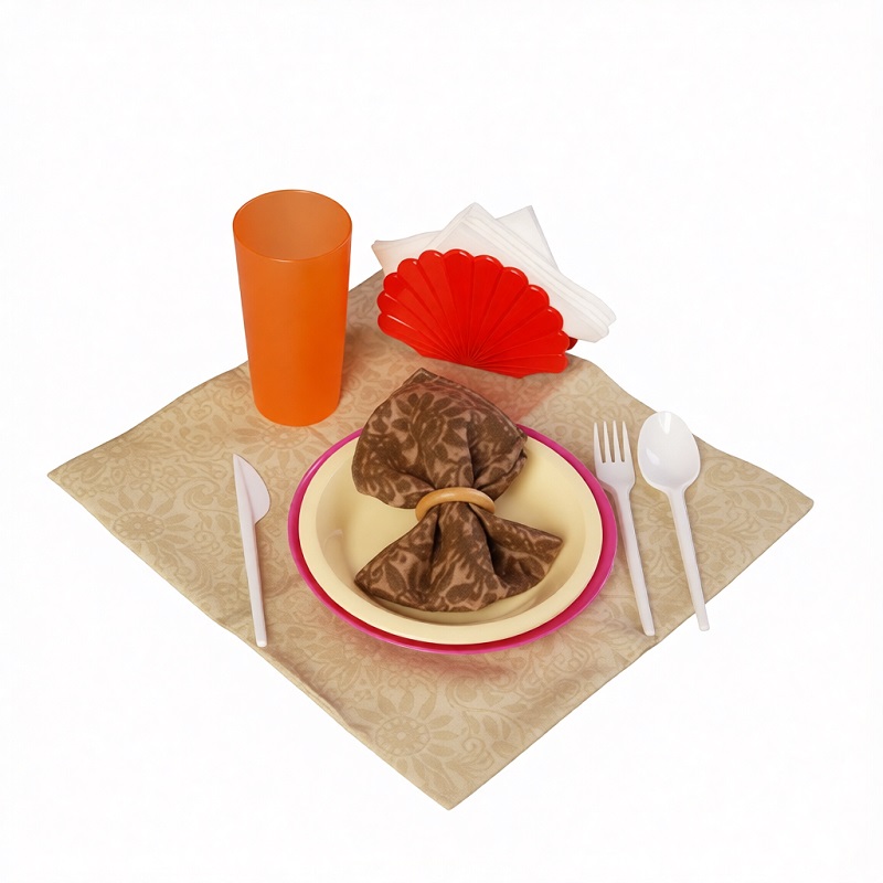 В комплекте: скатерть – 1 шт., салфетка тканевая – 1 шт., кольцо для салфетки – 1 шт., салфетки бумажные (упаковка) – 1 шт., салфетница – 1 шт., тарелка плоская – 1 шт., тарелка глубокая – 1 шт., стакан – 1 шт., вилка – 1 шт., нож – 1 шт., ложка – 1 шт., руководство по эксплуатации – 1 шт.