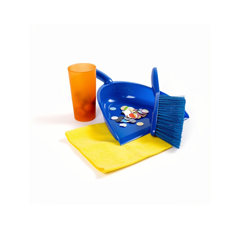 В комплекте: щетка для сметания мусора со стола – 1 шт., совок – 1 шт., тряпка – 1 шт., пакет с конфетти – 1 шт., стакан – 1 шт., руководство по эксплуатации – 1 шт.