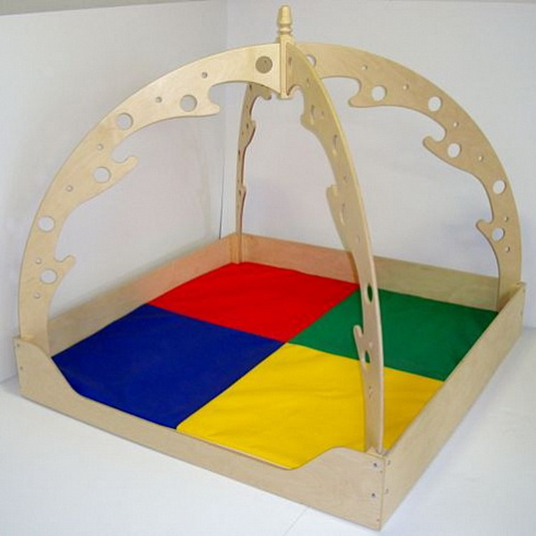 Каркас шатра выполнен из дерева, купол - из высококачественной ткани. В комплекте с шатром поставляется мягкий напольный мат.