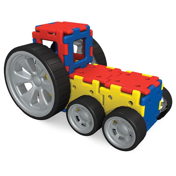 Используя этот набор, дети смогут построить большое количество разнообразных движущихся моделей (автомобиль, трактор, автобус и т.д.), которые продемонстрируют работу простейшего механизма, помогут развивать координацию и осваивать понятия движения и скорости.