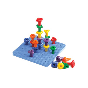 Квадратное игровое поле с сеткой отверстий. В отверстия нужно вставить цветные колышки, например, можно построить большинство плоских геометрических фигур, а еще выполнить упражнения на симметрию, сортировку, включив немного воображения изобразить что-то свое.